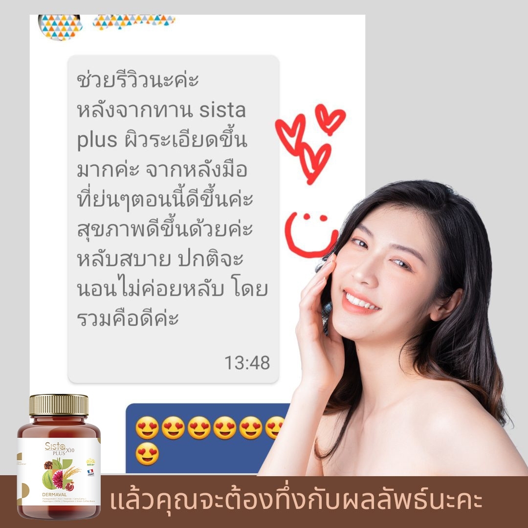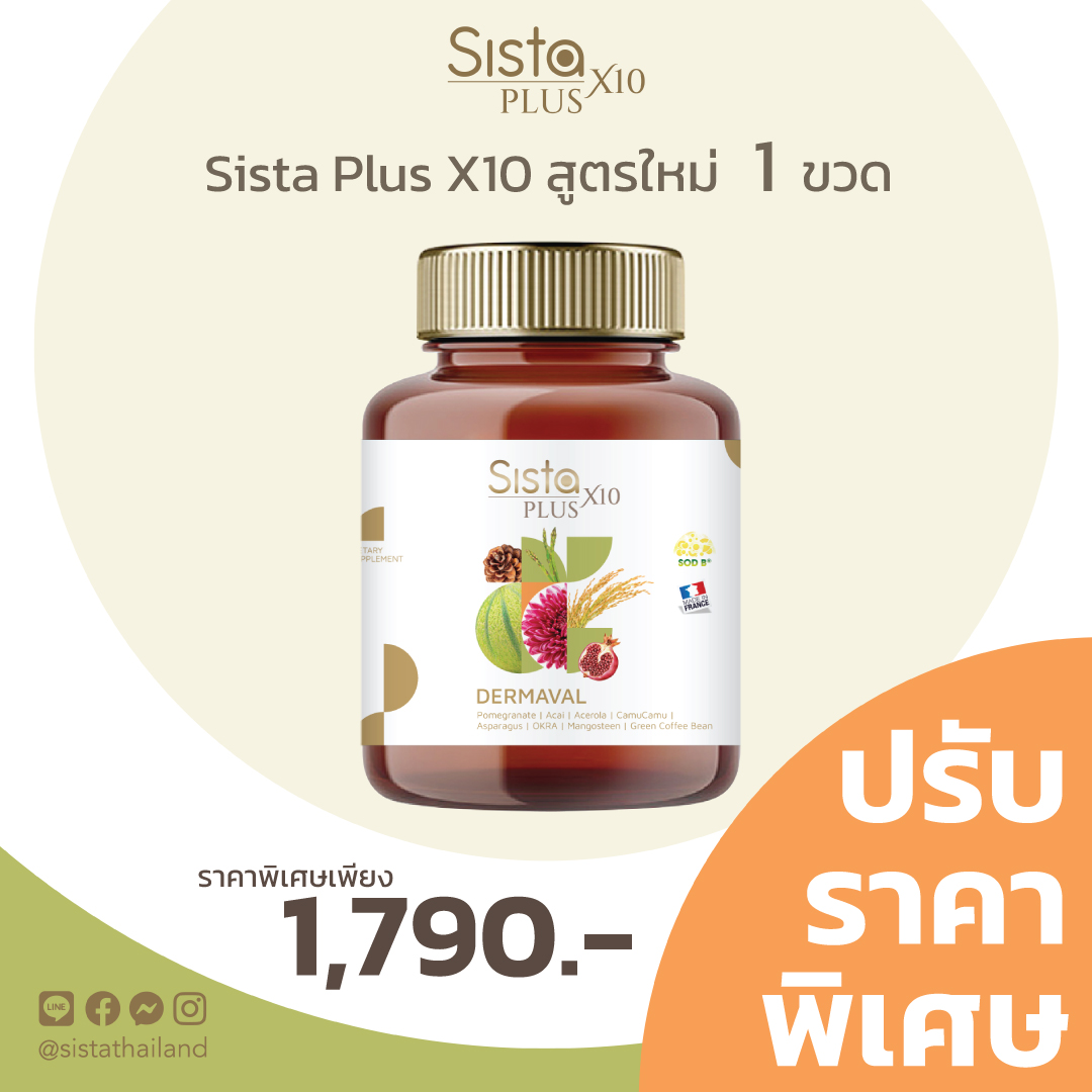Sista PLus X10 ของเรายังคงหลักการเดิมนะคะคือสารสกัดที่มาจากธรรมชาติล้วนและสารสกัดต่างๆใส่มาเป็น Active dose ไม่ใช่เพื่อมาประดับข้างขวดเท่านั้นและต้องมีการทำงานร่วมกันอย่างมีประสิทธิภาพเราจะมีการ Test ทั้งตัวของเราเองและกลุ่มตัวอย่างกันอย่างเข้มข้นก่อนที่จะเริ่มผลิตจริงจังสูตรใหม่นี้ถ้าให้พูดเลยจะบอกว่าเป็นสุดยอดของอาหารผิวจริงๆค่ะที่ผ่านมาเราอาจจะไม่ได้เน้นในเรื่องของความขาวกันมากนะคะแต่ก็ทราบว่าลูกค้าหลายๆท่านต้องการแก้ไขปัญหาเรื่องผิวขาวใสแต่ถ้าเป็นลูกค้าของเราจะทราบดีว่าแนนไม่เคยโฆษณาว่าของเราช่วยให้ผิวขาวขึ้นมีแต่บอกว่าทำให้ผิวกระจ่างใสขึ้นจนมาสูตรใหม่นี้ค่ะที่เรามั่นใจแล้วที่จะพูดว่าตัวนี้สามารถช่วยให้ผิวขาวขึ้นกระจ่างใสขึ้นรวมถึงช่วยในเรื่องของจุดด่างดำกับฝ้าได้เป็นอย่างดีเพราะหลักการตัวนี้คือการปกป้อง ป้องกันและฟื้นฟู ไม่ว่าจะเป็นการสร้างเกราะป้องกันผิวชั้นนอกด้วยการเรียงตัวของเคราตินจากสารสกัด Ceravite ที่มาจาก Rice ceramide เข้มข้นจากประเทศญี่ปุ่นช่วยให้ผิวแข็งแรงไม่อ่อนไหวต่อสิ่งเร้า รวมไปถึงได้ผิวที่นุ่มลื่นขึ้น ผิวแข็งแรงขึ้น